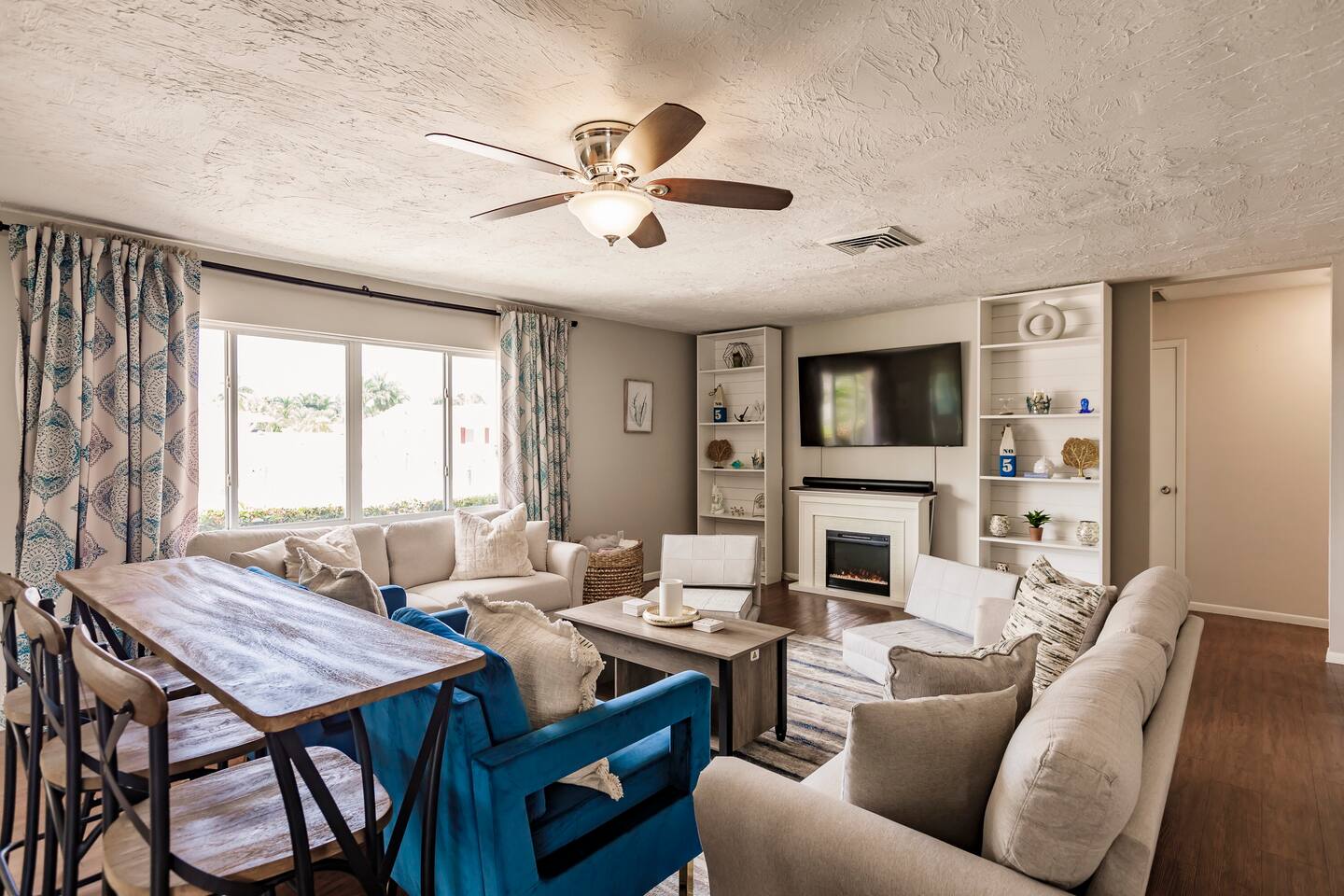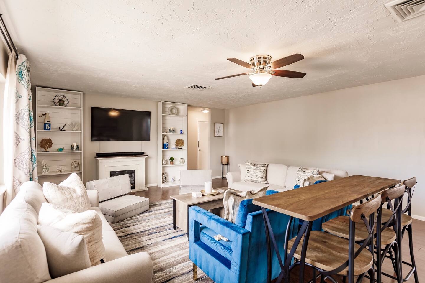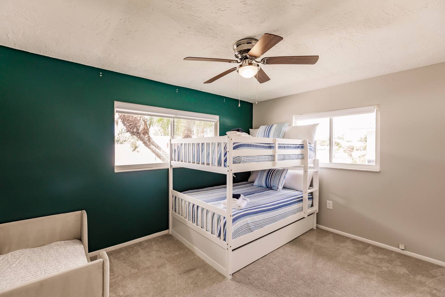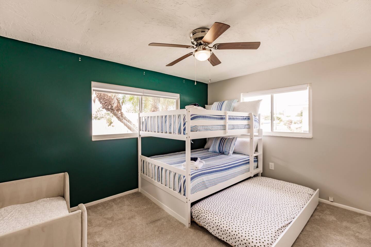 ●Property Features ● Super High-speed internet with Samsung smart TVs in living room and bedrooms (ability to log into your streaming services on all TVs), Central AC, private rear patio's, fully equipped kitchen with all major appliances, drip coffee maker, 2 King Beds, 1 queen bed, a bunk bed with two full beds, trundle bed, toddler bed, 2 large sofas, 2 bathroom with stand up shower/Full tub, clean linens and bath towels are provided for all guests, washer and dryer for guests, dedicated work-from-home desk, large private yard, gas grill, garage, and fire pit. ●Cleaning● Our cleaners are taking extra care to disinfect frequently touched surfaces between reservations (doorknobs, surfaces, light switches, remote controls, tables, fan and lamp chains, thermostats etc). ●Important● No smoking, vaping or drugs allowed...Pet requests reviewed...No events, parties or large gatherings...Must be at least 25 years old to book… We have a Ring Doorbell Camera on the exterior of our property facing the outside of our entrance. This is not monitored but does record. We also have a noise monitor system located inside the property in the kitchen/living room. This is a smart home device that measures volume levels throughout the property, it does not record sound, but allows us to respond to noise nuisances in a timely manner to ensure all neighbors are being respected. This system is 100% privacy compliant and is required on this property. These are to keep all guests safe and to keep the property secure. Thanks for understanding! 4 beach chairs, 10+ beach towels and a beach umbrella are provided and in the garage along with a cooler bag, beach wagon, and lawn games.
